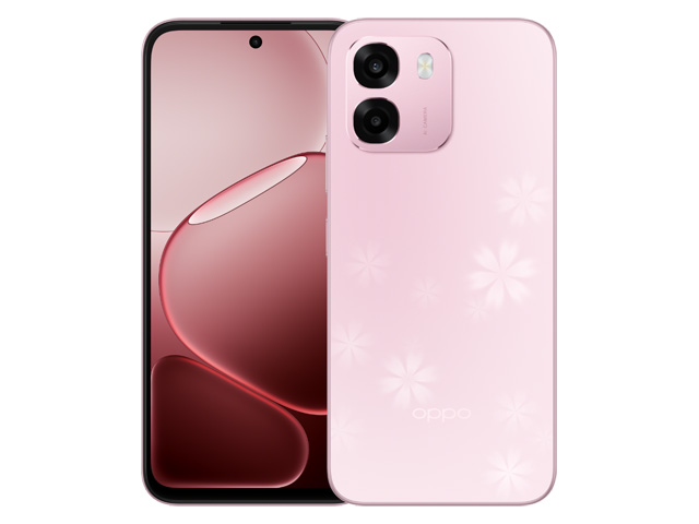 The OPPO A6 smartphone in Sakura Pink color.